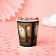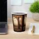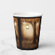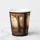 Papiertassen mit einer skurrilen, bezaubernden Abbildung in kräftigen Brauntönen und Gelb. Ein magischer mystischer Wald mit einem großen Baum, der eine alte Laterne hält. Luftlichter tanzen überall herum. Ein bezauberndes, wunderbares Design.