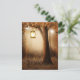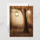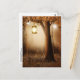 Postcard mit einer skurrilen, bezaubernden Abbildung in kräftigen Brauntönen und Gelb. Ein magischer mystischer Wald mit einem großen Baum, der eine alte Laterne hält. Luftlichter tanzen überall herum. Ein bezauberndes, wunderbares Design.