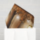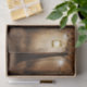 Zierpapier mit einer skurrilen, bezaubernden Abbildung in kräftigen Brauntönen und Gelb. Ein magischer mystischer Wald mit einem großen Baum, der eine alte Laterne hält. Luftlichter tanzen überall herum. Ein bezauberndes, wunderbares Design.