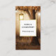 Visitenkarten mit einer skurrilen, bezaubernden Abbildung in kräftigen Brauntönen und Gelb. Ein magischer mystischer Wald mit einem großen Baum, der eine alte Laterne hält. Luftlichter tanzen überall herum. Ein bezauberndes, wunderbares Design.