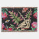 Nahtloses Muster. Magischer Wald. Einhorn und Motten zwischen Blume und Farn-Blätter. Einhornschädel, Schmetterlinge und Protea-Blume. Dunkle Blüte. Trend drucken. Halloween-Illustration. Treten Sie ein in einen magischen Wald mit diesem dunklen und bezaubernden Einhorn- und Mottenmuster. Dunkles und magisches Waldmuster mit Einhörnern und Motten zu Halloween. Einhorn, Skelett, Muster, Blume, Sommer, Hochzeit, Papier, Natur, Vintag, halloween, Illustration, Frühjahr, Wald, Schmetterling, Rose, Garten, nahtlos, Pferd, Schädel
