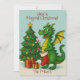 Feiern Sie den Urlaub mit einer Touch von Fantasie! Diese Festkarte enthält einen fröhlichen grünen Drachen von einem Weihnachtsbaum, der einen Strumpf und Bonbons hält. Ideal für Familien, die Magie, Launen und eine spielerische Drehung über Tradition Liebe haben. Passen Sie den Gruß und den Familiennamen an, um es einzigartig zu machen.