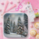 Diese Teller des Weihnachtsgebirges bieten eine Schneeszene aus dem Wald, die mit zauberhaften Lichtern gefüllt ist.