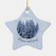 Dieses Weihnachtsschmuck beherbergt einen schneebedeckten Winterwald in dieser Keramik. Schneebäume in blauen Tönen auf einem zarten Hintergrund. Original Foto. Großartiges, romantisches, elegantes Design für Ihren Weihnachtsbaum, schönes Geschenk für jeden! Personalisierbar.