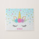 Einzigartiges Puzzle für Kinder. Dieses niedliche Design besticht durch ein einzigartiges Gesicht, Blume und Sterne. Personalisieren Sie mit einem Namen für ein besonderes Geschenk!