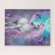 Ein fantasievolles Lila Einhorn mit Schmetterlingen und Blume Jigsaw Puzzle für Mädchen