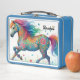 Schöne und farbenfrohe magische Pferd Mittagsbox, bearbeiten Sie den Namen selbst, wenn Sie bestellen. Das gleiche Bild auf der Vorder- und Rückseite.