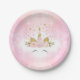 Girly Pappteller, der Pastellrosawolken und Illustration eines entzückenden Einhorngesichtes kennzeichnet