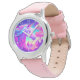 Kinderuhr aus Edelstahl mit rosa Lederarmband