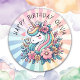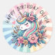 Sweet pink, blau, aquamarin und goldgelb magisches Einhorn, Blume und Herzen kleine Mädchen Geburtstagsticker. Ein hübsches Einhorn umgeben von Blume und Herzen. Niedlich für jedes kleine Mädchen, das Einhörner und Blume Lieben!