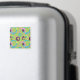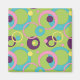 Der hellgrüne Hintergrund ist mit einem trendigen Muster von Kreisen, Punkten und Ringen in verschiedenen lebhaften Farben, darunter Rosa, Blau, lila und Gelb, geschmückt.