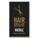 Hair Stylist Card Magnet Gold Schere mit schwarzem Hintergrund. Stellen Sie sich mit Ihren persönlichen Informationen und Farben ein.