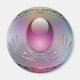 Pastellblau, Lavendel und rosa Design mit einem durchsichtigen rosa Ei in einem silberfarbenen filigranen Rahmen, umgeben von einem leicht silberfarbenen ovalen Rahmen-Set mit vier glatten Edelsteinen wie farbenfrohen Eiern.