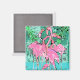 Ein Magnet, der im Retro-Stil entworfen wurde.. eine lustige abstrakte Herde von rosa Flamingo-Vögeln! Genießen Sie das Leben und danken Sie für Ihr Kommen!