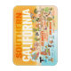Der helle und charmante Cartoon bietet eine herrliche Aussicht auf Südkalifornien - süße Figuren genießen die warme kalifornische Sonne mit Los Angeles, San Diego, Riverside, Palm Springs, Anaheim und Long Beach sowie die Grenzstädte Tijuana, Tecate und Mexicali.