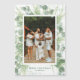 Diese handbemalte Weihnachtskarte weist einen Aquarellstreifen mit Eukalyptus-Blätter auf und kiefer umrahmt ein Single-Foto. Diese magnetische Ferienkarte macht einen großartigen Sake.