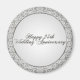 Ein Digitalbcon-Bilddesign mit einem platinsilberfarbenen Thema mit einer Vielzahl von individuellen Bildern, Formen, Mustern, Stilen und Schriftart in diesem einzigartigen Silver Wedding Anniversary Magnet. Dieses farbenfrohe Design ist sowohl ansprechend als auch elegant und verleiht Ihrer Küche Anmut, auf dem Kühlschrank, dem Ofen oder auf jeder metalischen Oberfläche, wo die Schönheit dieses Momento genossen werden kann.
