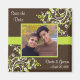 Speichern Sie die Date Magnete mit Ihrem Foto auf einem eleganten, braunen und limig grünen wirbelfarbenen Hintergrund. Fügen Sie Ihr Foto hinzu und geben Sie Ihre Informationen in unsere leicht zu bedienende Vorlage ein.