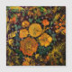 Dieses lebendige Bild verbindet ein Bild mit einer digitalen Kunst, mit leuchtenden, goldgelben und orangefarbenen Blume mit einer faszinierenden, webähnlichen Textur. Die Blume ähneln Rose und anderen Blüten, umgeben von einem Gewirr neonähnlicher Stiele und Blätter in Grün-, Orange- und Rottönen. Der Hintergrund ist dunkel, fast schwarz, was die Lichtwirkung der Blume und des Blattwerks verstärkt. Die kleinen, sternförmigen Lichter sorgen für ein zauberhaftes oder kosmisches Ambiente.