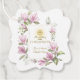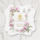 Magnolische Blume symbolisierten Würde und Adel. In manchen Kulturen symbolisiert sie Reinheit und Schönheit. Elegantes Magnolia Rosa Blume Bloom Gold Hochzeitdesign. Elegantes blumengeschmücktes Design mit rosa Magnolienecken, Imitaten goldbraunen Formen, Blumenspalte. Verwenden Sie das Tool Personalisieren, um Ihre Informationen hinzuzufügen. Für passende Artikel besuchen Sie bitte meine Kollektion der heiligen Kommunion.