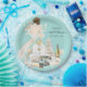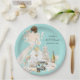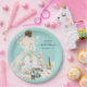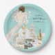 Aquarellbraut in Hochzeitskleid und magnolischen Blume. Wählen Sie Haarfarbe und Hintergrundfarbe, um Ihre Veranstaltung zu personalisieren.