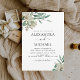 Magnolia Eukalyptus Watercolor Elegante Grünpflanzen Frühjahrsblüte Elegant und Moderne Einladungen auf Weißen Hintergrund - beinhaltet schöne und elegante Schrift-Typografie mit modernen botanischen Blätter und Grün für die besondere Hochzeitstagsfeier.