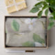 "Magnolia Blumenbauernhof Graues, gewittertes Holz und Ephemera mit Leaf Foliage Greenery Dekoupage Tissue Paper." BOHO natürliche Blüte mit weißen Magnolien und Blättergrün über rustikal weiche graue Holzboden. Kunst von international lizenzierter Künstlerin und Designerin, Audrey Jeanne Roberts, Copyright.