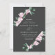Elegante blumengeschmückte Einladungen mit Ihren Hochzeitsdetails, umgeben von einem geometrischen Rahmen aus Aquarellfarben, rosa Magnolien-Blume und grünen Eukalyptus-Blätter vor kohlefarbenem Hintergrund. Die Rückseite der magnolia Hochzeitseinladungen weist einen soliden eukalyptus grünen Hintergrund auf. Entworfen, um mit unserer Magnolia & Eukalyptus Hochzeitskollektion zu koordinieren.