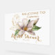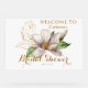 Watercolor Magnolia Lila florales Brautparty Willkommen Akryllisches Zeichen bietet elegante Aquarellfarben magnolia Blume in sanften Lavendel und lila mit grünen Blätter auf einem weißen Hintergrund mit goldenem Akzent mit Ihrem Brautparty Willkommenszeichen unten. Für Sie entworfen von Evco Studio www.zazzle.com/store/evcostudio