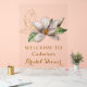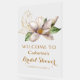 Watercolor Magnolia Lila florales Brautparty Willkommen Akryllische Hochzeitssignen bietet elegante Aquarellfarben magnolia Blume in sanften Lavendel und lila mit grünen Blätter auf einem weißen Hintergrund mit goldenem Akzent mit Ihrem Brautparty Willkommenszeichen unten. Für Sie entworfen von Evco Studio www.zazzle.com/store/evcostudio