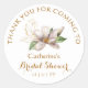 Watercolor Magnolia Lila Floral Brautparty Danke Stickers bietet elegante Aquarellfarben magnolia Blume in weicher Lavendel und lila mit grünen Blätter auf einem weißen Hintergrund mit Gold mit Ihrem Brautparty Dankeschön. Für Sie entworfen von Evco Studio www.zazzle.com/store/evcostudio