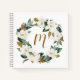 Watercolor Magnolia Wreath Monogram Notebook | Maßgeschneidertes Blumenkranz-Notizbuch mit Aquarellbildern wie Magnolien, Pfannkuchen und Baumwollkranz. Das ist ein personalisiertes Geschenk für Brautmädchen, Absolventen und vieles mehr.