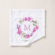 Eleganter und sanfter Kranz Magnolia blühen Aquarellkunst in Weiß und Rosa und ein Monogramm. Ein schönes Blumendesign. Personalisieren Sie das Monogramm und den Text.