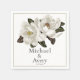 Feiern Sie Hochzeiten und besondere Veranstaltungen mit einer eleganten Wasserfarbe Elfenbeinmagnolienblüten. Klicken Sie auf die Schaltfläche, um Namen, Daten und Farben zu ändern.