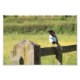 Ein europäischer Magpie (Pica pica), stehend auf einem Holzzaun im Park der aufgehenden Sonne, Newcastle upon Tyne.