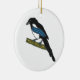 Drawing of a Magpie with the distinctive blue flash of color, and the white markings - perched on a branch. A clever bird with much folklore referring to it. A fun design for Magpie fans.