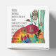 Design mit glücklichen Symbolen wie einem grünen Drachen, Regenbogen und Hamsa.