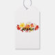 Helle Aquarellplumeria-Blume in Rot, Orangen und Gelb mit Mahalo (vielen Dank) Text