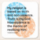 Meine Religion beruht auf Wahrheit und Nicht-Gewalt. Die Wahrheit ist mein Gott. Nicht-Gewalt ist das Mittel, Ihn zu verwirklichen. - Zitate der Mahatma-Gandhi-Religion