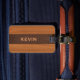 Mahogany Wood And Brown Leather Texture Monogram Gepäckanhänger