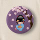 Maiko Kokeshi Doll - Blue Kimono Geisha Girl Button