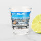 Malerei der Mailänder Skyline mit modernen Wolkenkratzern im Finanzviertel Porto Nuovo und Steinstatuen der Dom-Kathedrale.
