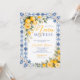 The back of the invitation continues the blue tile and watercolor lemon floral design, creating a cohesive and polished stationery set. Easily personalize with your event details to create a memorable and beautifully styled bridal shower invitation.