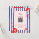 digitale Download-Option: handbemalter gestreifter Hintergrund und illustrierte Muscheln in leuchtend rot mit Zitronenscheiben; lustiger und lässiger QR-Code optional für uAwg online