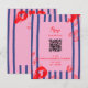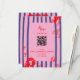 handbemalter gestreifter Hintergrund und illustrierte Muscheln in leuchtend roter Farbe mit Zitronenscheiben; lustiger und lässiger QR-Code optional für uAwg online