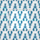 Weißer Stoff gemustert mit handgezogenen blauen Hummern