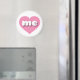 Dieser Magnet hat ein pulsierendes rosa Herz, das die fett-, weiß-, abgerundeten Kleinbuchstaben enthält, die mir eine spielerische Abkürzung für Maine, den Kiefernbaum-Staat, geben.