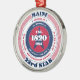 Zeigen Sie Ihren Staatsstolz in dieser Urlaubssaison mit diesem einzigartigen Weihnachtsschmuck, der Maine gewidmet ist, dem 23. Staat. Es hat rote, weiße und blaue patriotische Farben mit einem runden Typografie-Design auf weißem Hintergrund. Der Text enthält Fakten über den Staat, wie seinen Namen, seine Hauptstadt, die Abkürzung des Staat, die Region, die Zeitzone, die geografischen Koordinaten, das Jahr seines Staates und den Namen seines Bewohners. Es ist ein großartiges Geschenk für diejenigen, die ihren Staat feiern möchten oder für diejenigen, die Gefühl nostalgisch über ihren Zuhause-Staat sind.