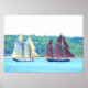 Rot-weiß-segelte Holzpferde, die in Maine segeln