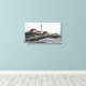 Das Portland Head Lighthouse, Maines erster Leuchtturm, wurde 1791 auf Anordnung von Präsident George Washington erbaut. Dieser Leinwand zeigt den stehenden Beachwächter des historischen Leuchtturms über dem felsigen Ufer von Maine.